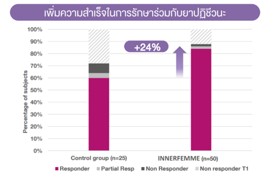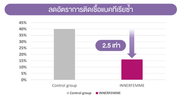 • การใช้ Innerfemme ระยะยาวช่วยฟื้นฟู Lactobacillus spp. ได้มากกว่า 90% พร้อมกับการแก้ไขอาการโดยสมบูรณ์