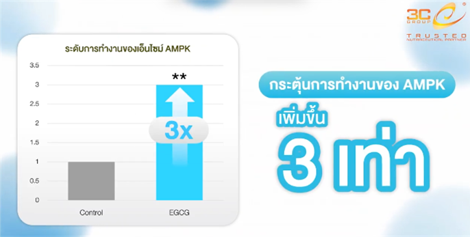 กระตุ้น AMPK สูงขึ้น 3 เท่า เมื่อเทียบกับกลุ่มควบคุมสารสกัดนี้ช่วยให้เอนไซม์เผาผลาญทำงานได้ดีขึ้นอย่างมีนัยสำคัญ