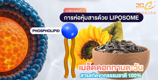 วัตถุดิบ : ใช้ Phospholipid ธรรมชาติ 100% ที่สกัดจาก เมล็ดดอกทานตะวัน