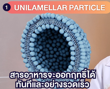 1.อนุภาค Unilamellar Particle เป็นอนุภาคไลโปโซมที่มีเปลือกเพียงชั้นเดียวครับดังนั้น เมื่อนำส่งเข้าสู่ร่างกายแล้ว สารอาหารจะสามารถออกฤทธิ์ได้ทันทีและออกฤทธิ์ได้อย่างรวดเร็วครับ