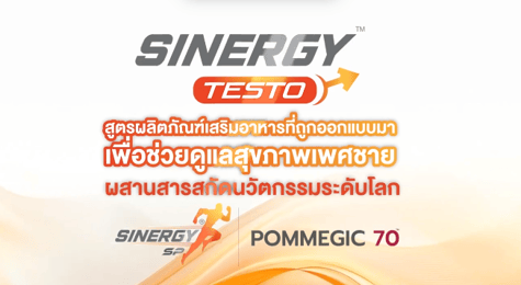 Synergy Testo สูตรผลิตภัณฑ์เสริมอาหารที่ถูกออกแบบมาเพื่อช่วยดูแลสุขภาพเพศชาย ผสานสารสกัดนวัตกรรมระดับโลก Synergy SP และ Pomagic 70